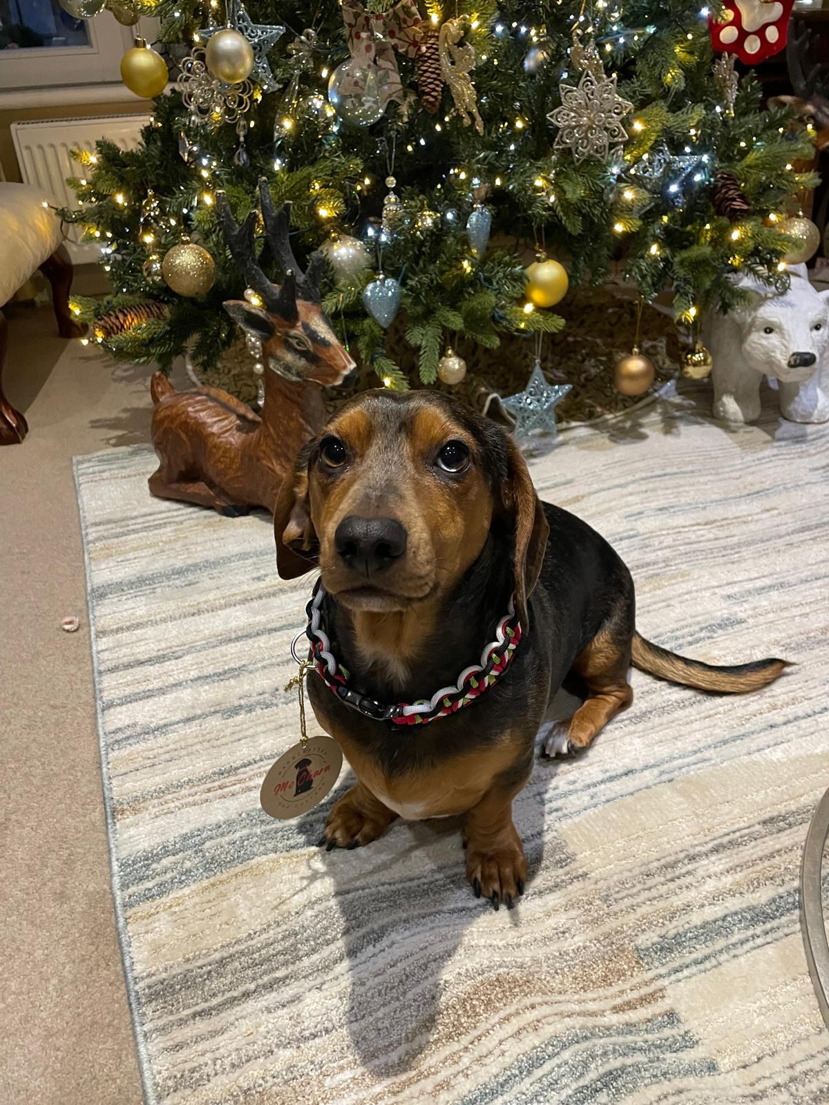 His sister Lady Darcy, had her very own collar made in 3mm cord.