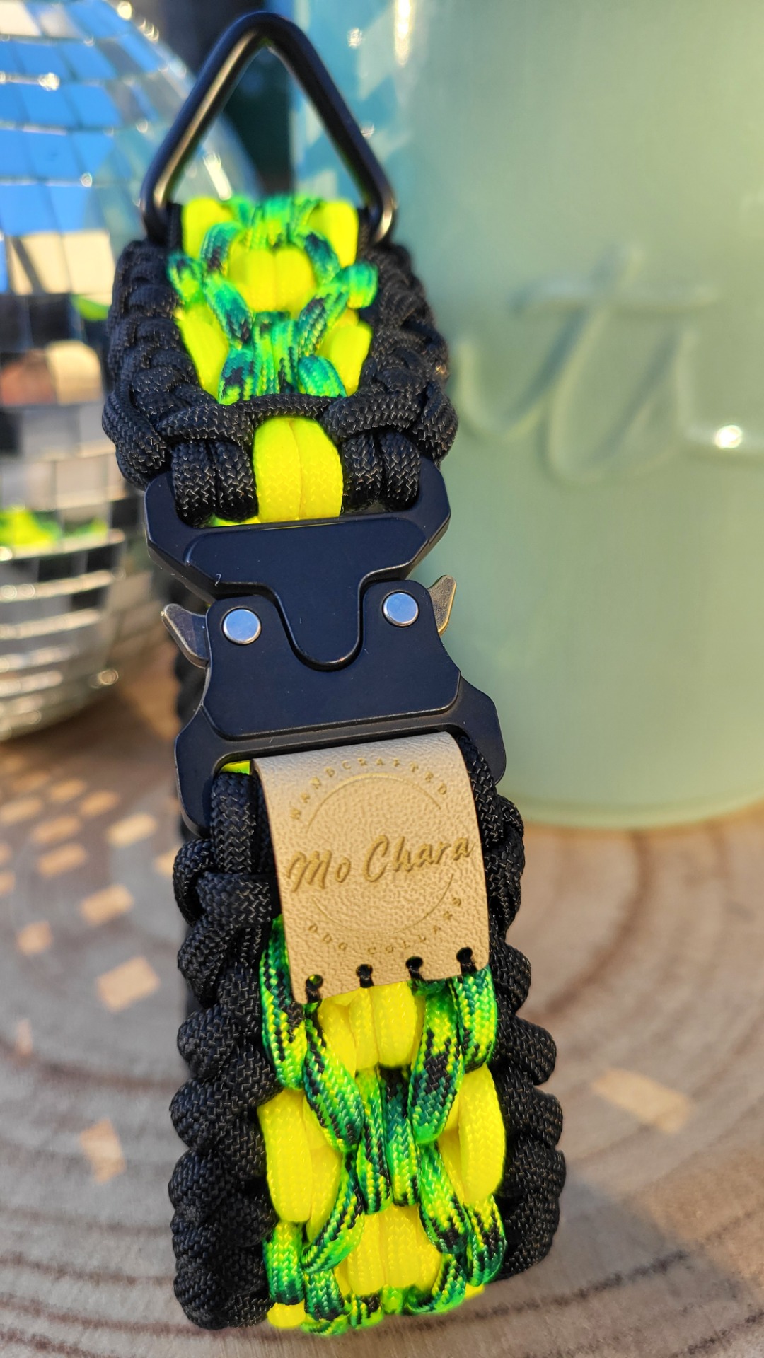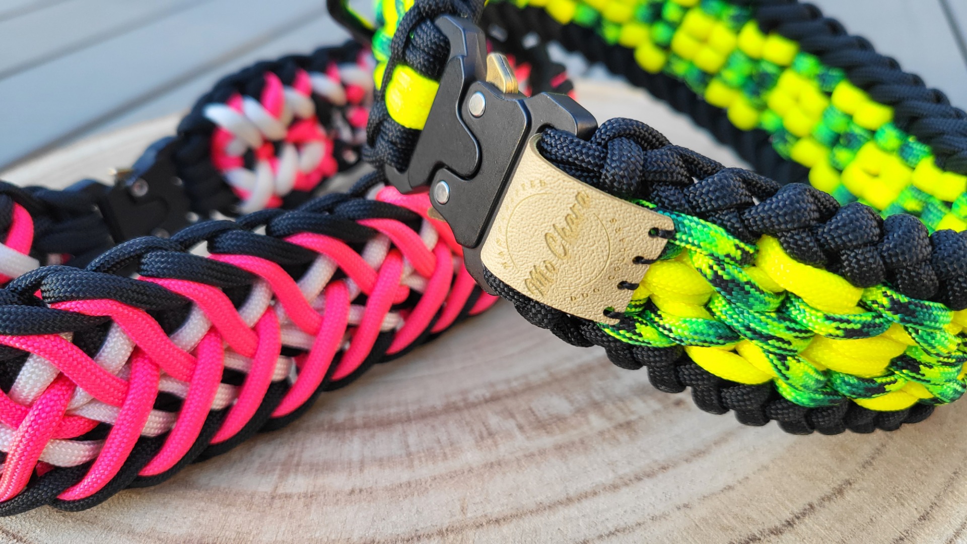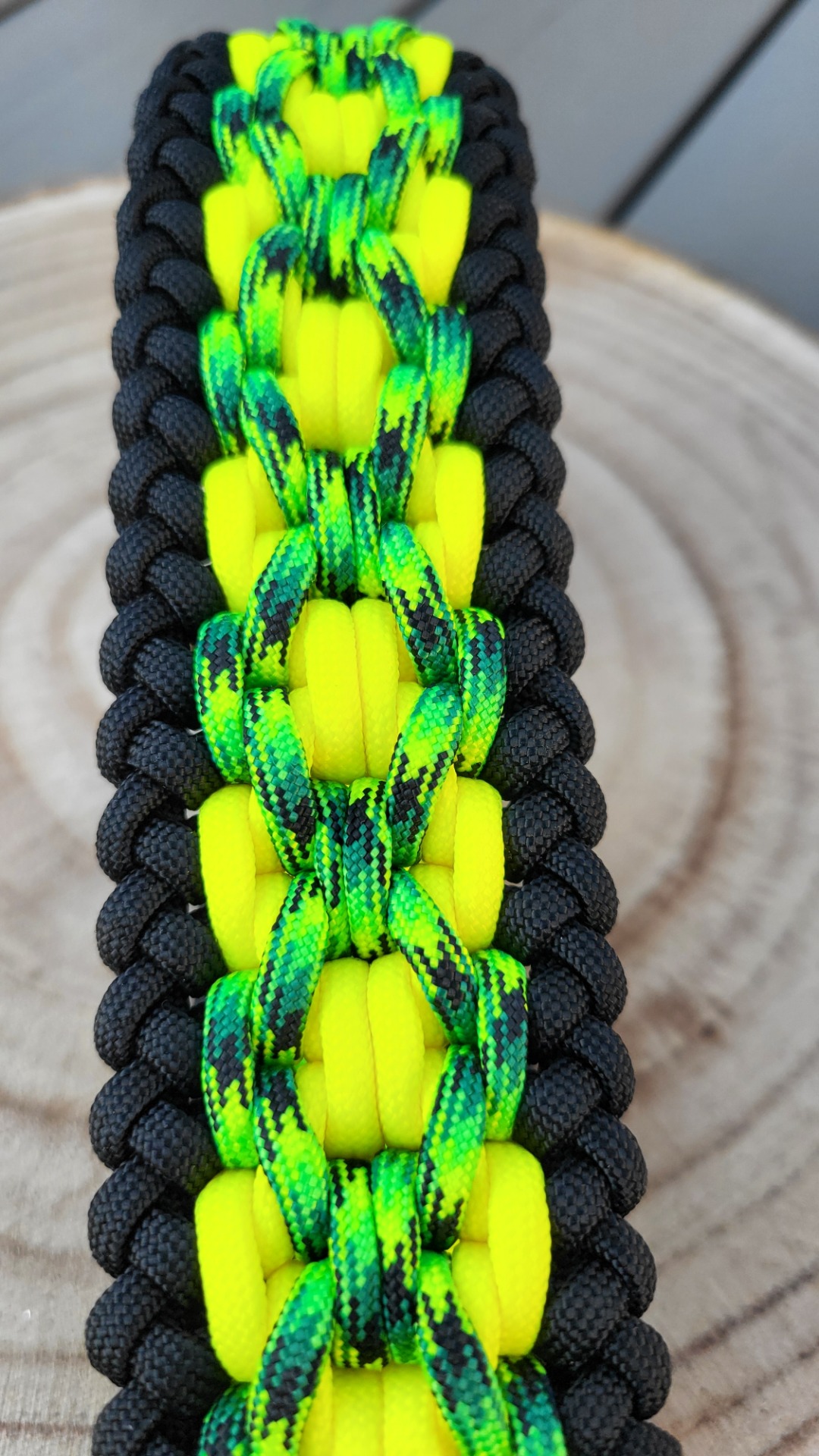 This particular collar is super vibrant with black, green neon mix, and a punch of neon yellow..